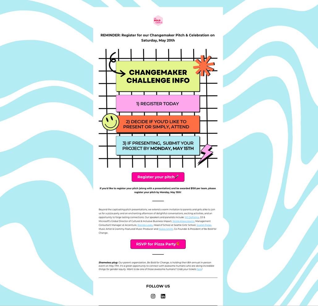 Created event collateral and designed email newsletters (averaging 40% open rate) for non-profit, Be Bold Girls.